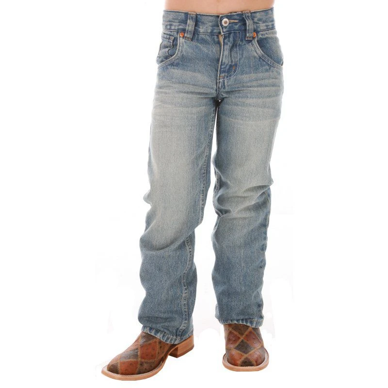 What a great look for your little cowboy in these Cinch Tanner Slim Fit jeans. other features included 12 oz denim, medium stonewash, whiskers, resin baked creases and hand sanding, with adjustable waistband.
