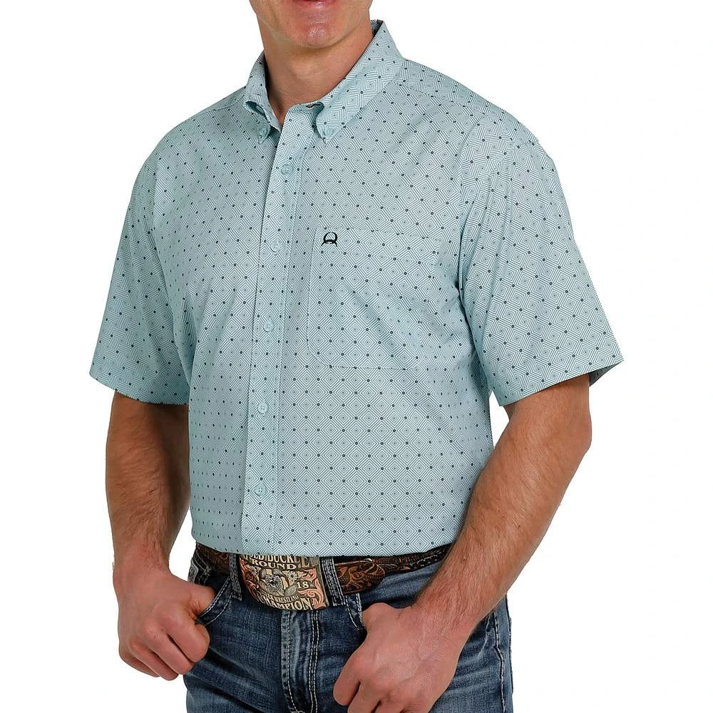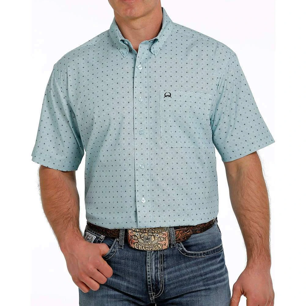 Go for a casual look wearing our light blue printed ArenaFlex shirt by Cinch.