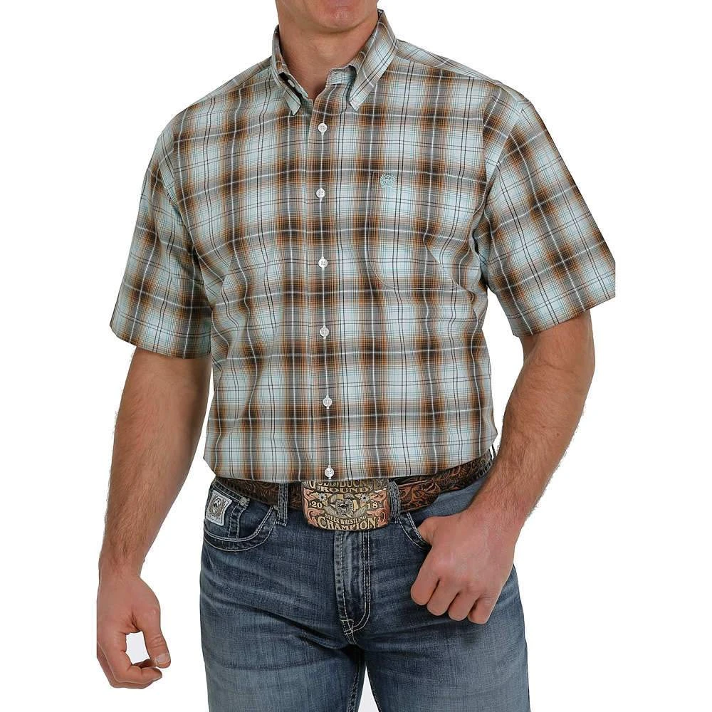 ย Go for a casual look wearing our brown plaid short sleeve by Cinch.