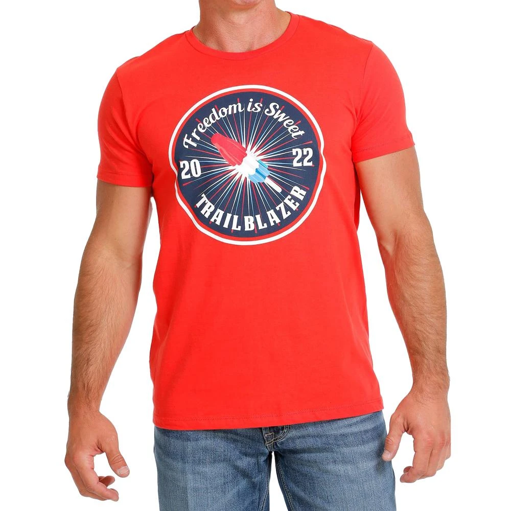 Inspired by the spirit of the season, we’ve crafted this patriotic red cotton crew neck Trailblazer tee that’s the perfect choice for Independence Day festivities. Pair with blue jeans or shorts for a casual barbeque or gathering at the ranch.