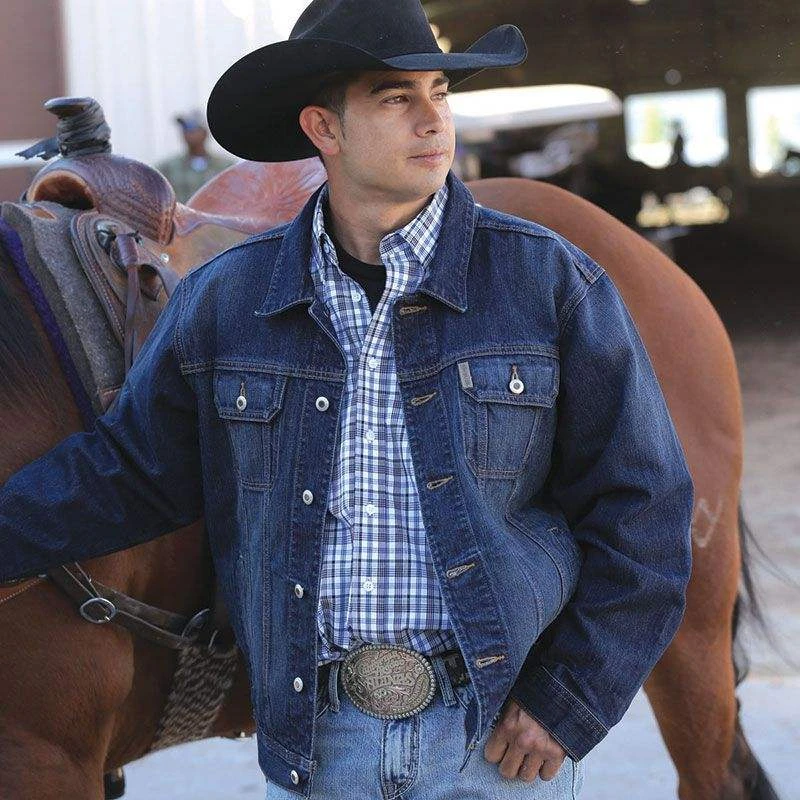 This Men’s Cinch Denim Buttondown Jacket is a great piece to add to your closet for the winter. This jacket features two button flap pockets and two hand pockets.