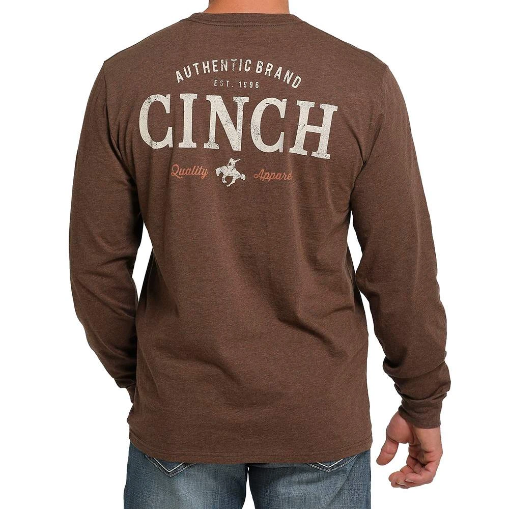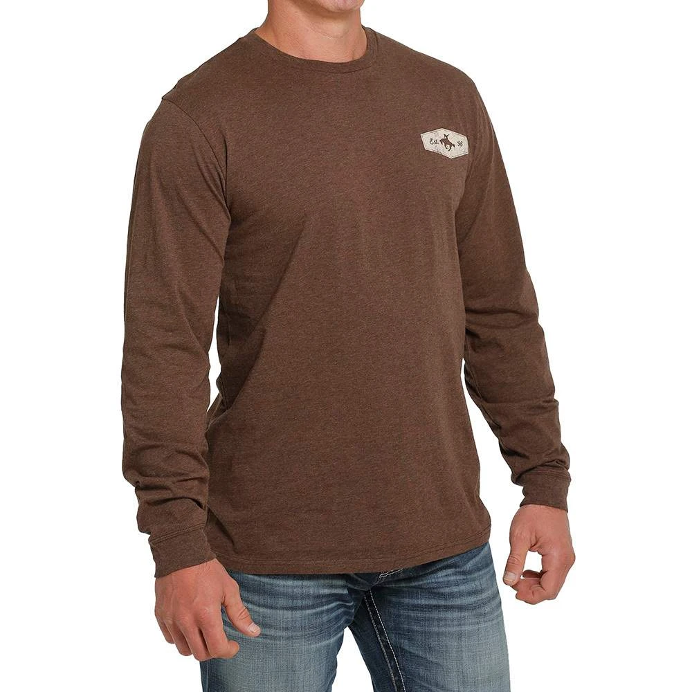 Ā Heathered brown cotton-poly jersey tee with royal and white front screen print.