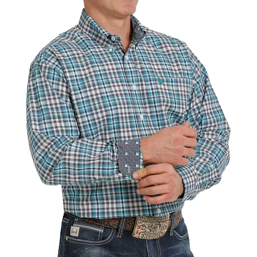 Add some style to your wardrobe wearing our navy plaid buttondown by Cinch.