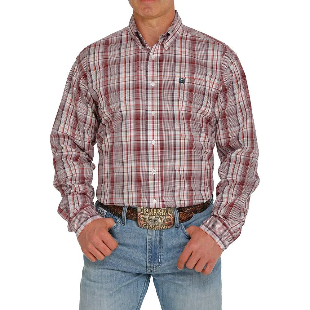 For a classic look that’s improved with extra stretch, choose this white plaid shirt engineered by CINCH. Made up in comfortable cotton-spandex plain weave, design details include an open left front pocket with embroidered logo and white buttons.