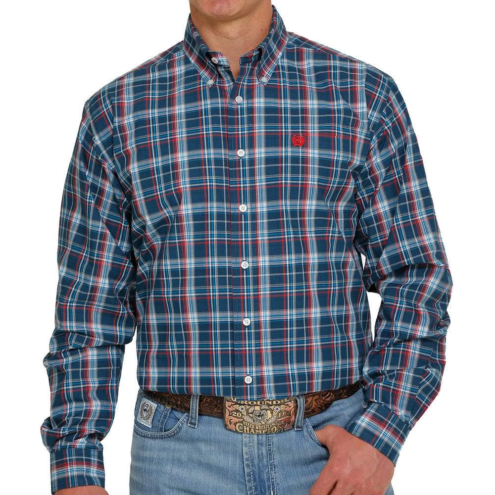 A classic plaid like this navy cotton plain weave by CINCH belongs in every fashionable man’s closet. For a look that never goes out of style, pair this shirt with new blue jeans or khakis. Design details include an open left front pocket, embroidered logo and white buttons.