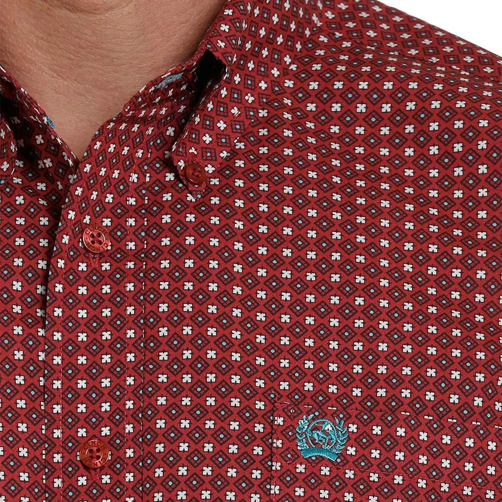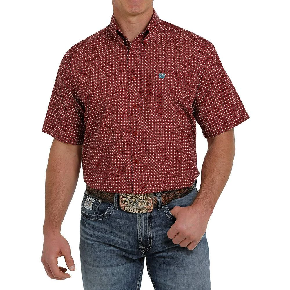 Go for a casual look wearing our red & white print, short sleeve, buttondown by Cinch.
