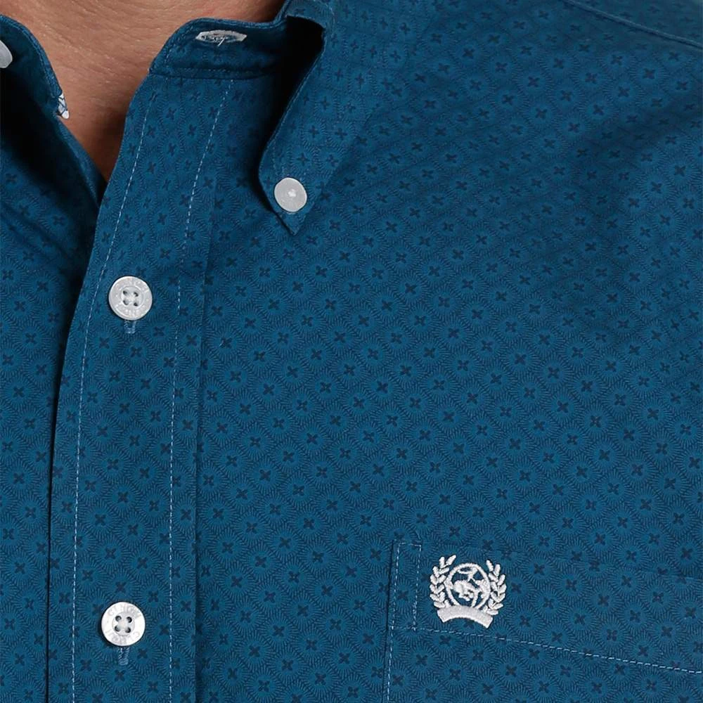 Β Step out in style wearing our teal, tonal print buttondown by Cinch.