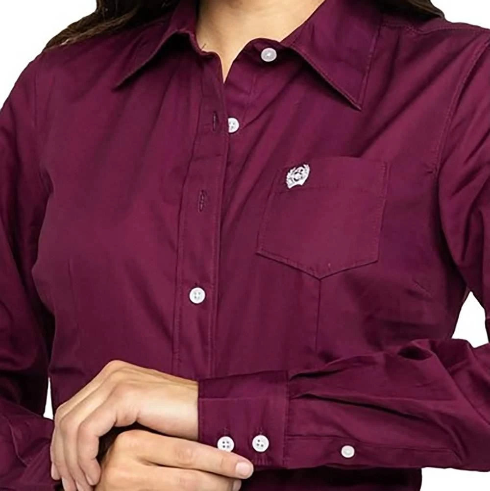 Β This burgundy Cinch long sleeve shirt is subtle, yet essential and will pair great with a pair of CINCH ladies jeans!