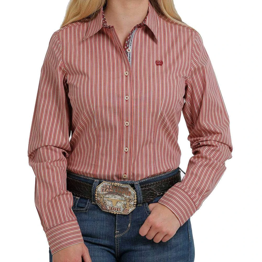 Perfect for a fresh, put-together picture, this orange striped cotton-spandex plain weave keeps you ultra comfortable both in and out of the saddle. Design details include contrast trim, embroidered logo and cream buttons.